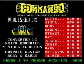 Capcom, Japanese coin-op manufacturer released the arcade game Commando in the UK early this year. It has not taken Elite long to sniff it out, buy the rights an produce a computer counterpart.
