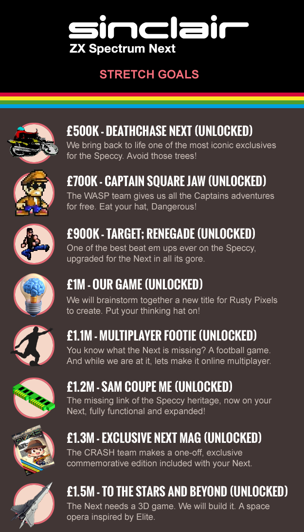 The fourth stretch goal was set at £500,000 which doubled the memory from 512KB to 1MB in each Next sold.