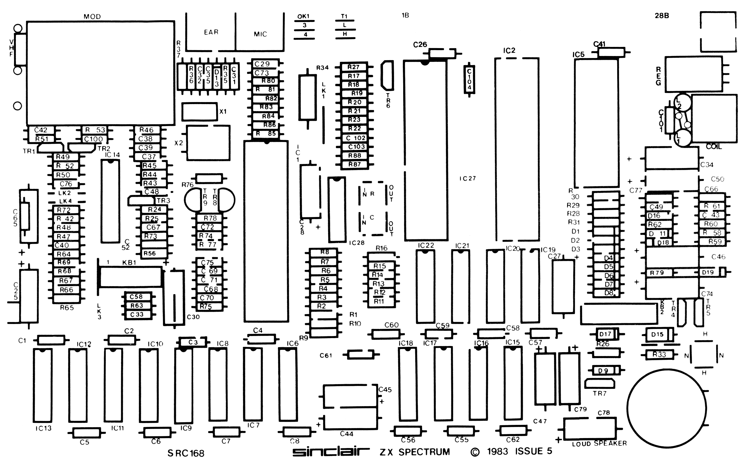 ZX Spectrum 16K/48K Issue 5 Board Component Layout