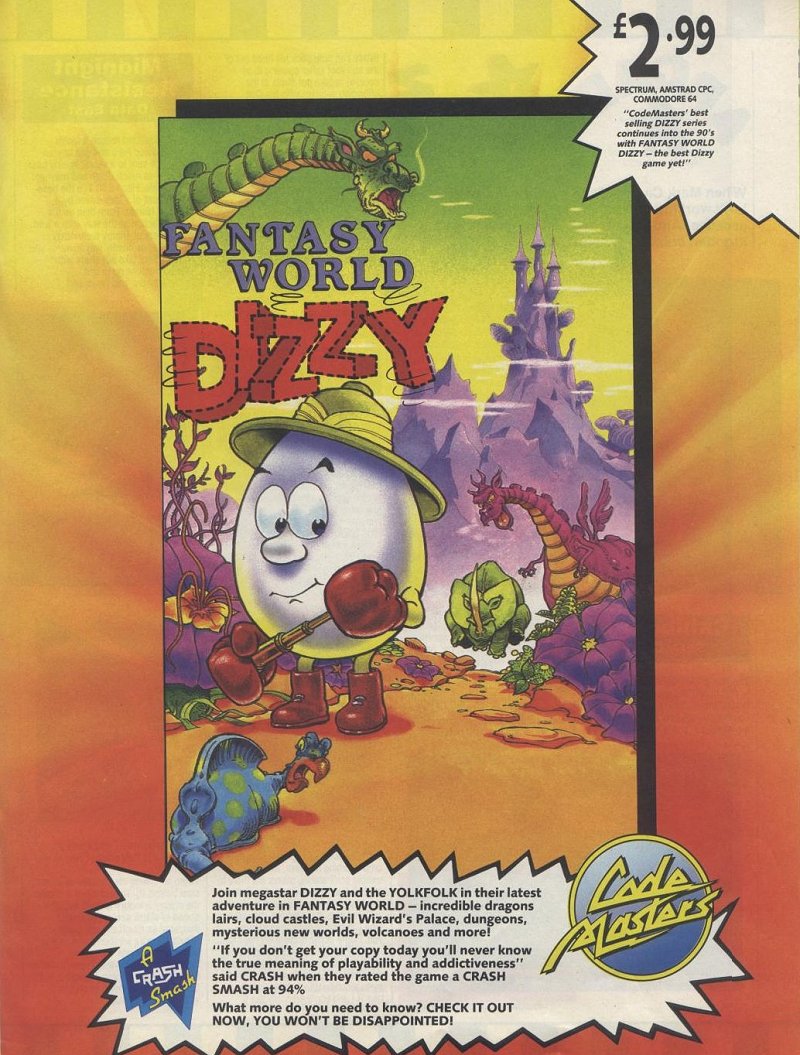 ![]() | Dizzy 3: Fantasy World Dizzy Publisher: Codemasters Ltd Released: 1989 Platform: Sinclair ZX Spectrum |