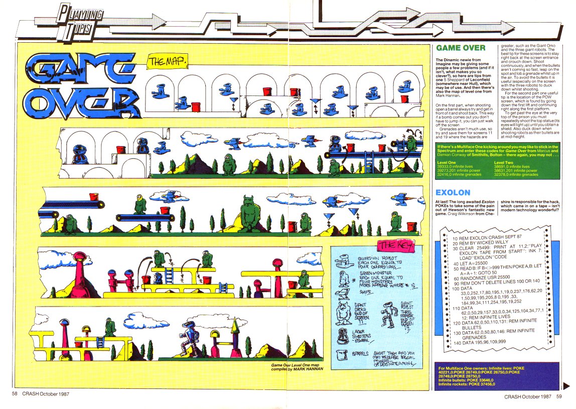 Publisher: Genre: Author(s): Minimum Memory Required: Maximum Players: Joysticks: Language: Media Code: Media Type: Country of Release: Related Titles: Other Files: Comments: | ![]() Platform / 2D Unknown 64K 1 Yes Eng N/A Audio cassette UK (£7.95) Game Over 2 Game Map, Your Sinclair Poster (Issue 21) | Commodore 64 More from other publishers: Amstrad CPC Sinclair ZX Spectrum MSX |