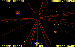 And that's how it is with Gorf - it lacks that addictiveness that the good shooters have, and there's really no high point to the game. The controls are good, the levels have some variety, graphically it's not so bad - colourful, at least - and the sound effects are bearable, with only one annoying 'whirrr' noise that the circling enemies in the third level make. But gameplay is lacking, and even in its era Gorf had stiff competition from other shooters. I don't know how well it did in the arcades, but on the Commodore, there are dozens of better shooters, and Gorf does not advance beyond the level of games that are fun to play once or twice, after which you put them away, forever to collect dust on their tape or disk.