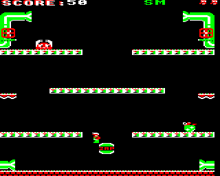 Your aim is to collect coins that are dropped from above, and eventually escape. While doing this you are hampered by three creatures. Inky, Pinky and Dinky, and various other nasties.