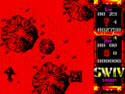 And judging by the look of Storm's long-awaited second game (their first since St Dragon) I reckon it's odds on they've got a copy too. You see, SWIV is not only a rather corking shoot-'em-up - it's also a simultaneous 2-player thingimeebob which sees you and a mate taking control of a helicopter and jeep and blasting the red silk stockings off loads of unsavoury space spooks. In other words - just like Silkworm! Hurrah! And it's almost (not quite, but almost) just as super spiffingly good! Let's take a gander...