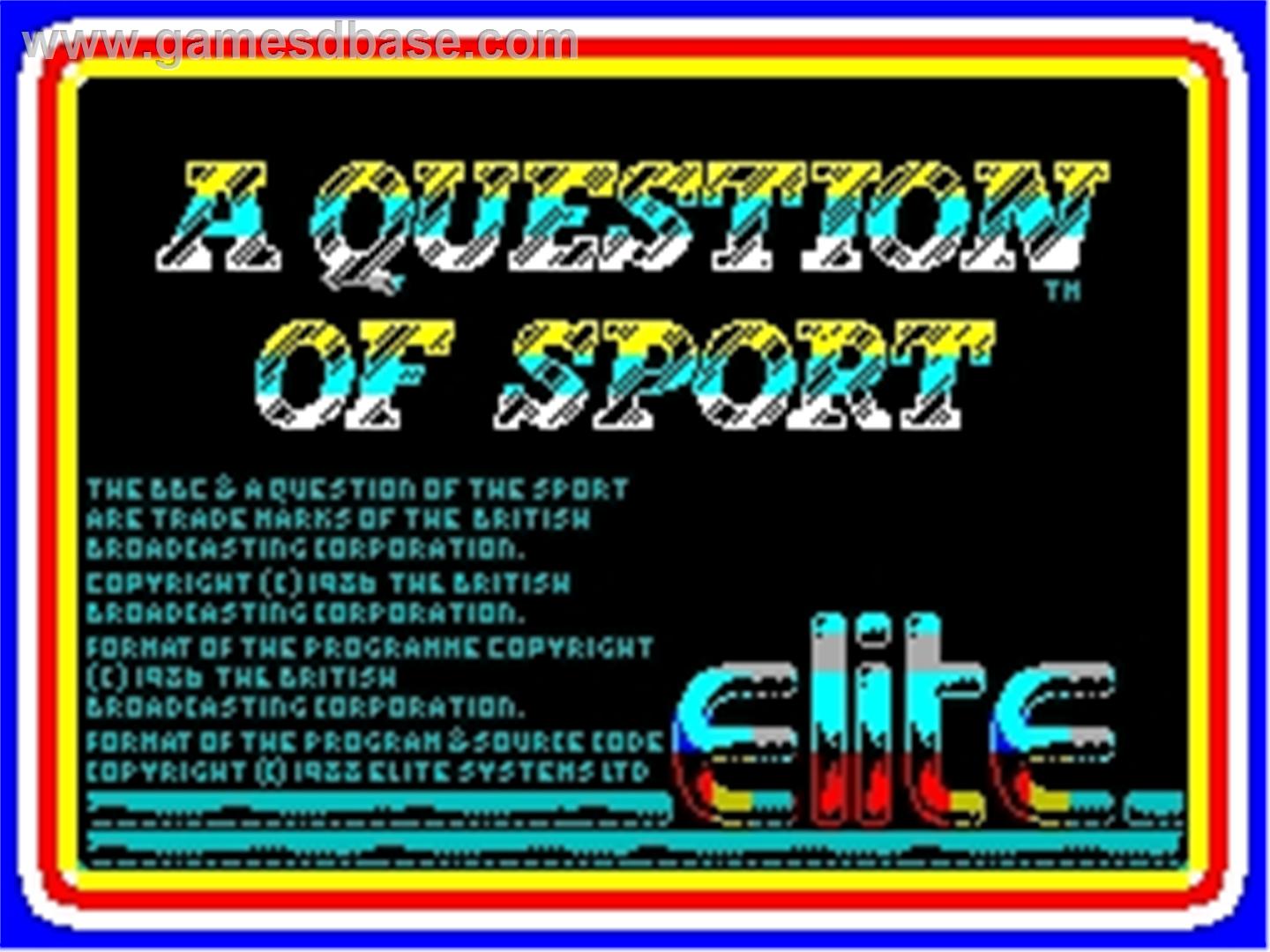 | Publisher: Genre: Author(s): Minimum Memory Required: Maximum Players: Joysticks: Language: Media Code: Media Type: Country of Release: Other Files: Comments: | Elite Systems LtdQuiz Byron Nilssen, John May 48K 1-2 - Eng N/A Audio cassette Europe (£14.99) Advertisement, Game instructions Re-released by Encore (£2.99) | Click to choose platform: Amstrad CPC Atari ST Sinclair ZX Spectrum Commodore Amiga More from other publishers: Acorn BBC Acorn Electron |