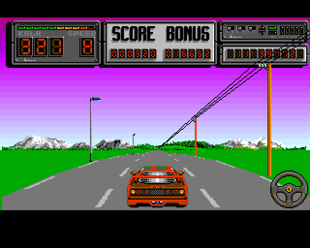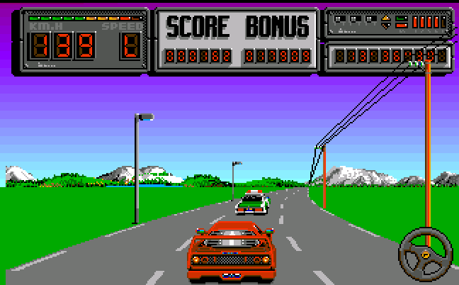 Jun 1989 (CU Amiga) 4th Dec 2011 05:22The follow up to the best-selling (but highly overrated ) Crazy Cars is imaginatively called Crazy Cars II. This time you are at the wheel of a Ferrari F40 and in a race against time to smash a stolen car racket. It won’t be easy however – the people running the racket are corrupt cops.
