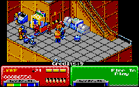 Armed with a ray gun and a fistful of bombs you have to work through the planet destroying the robots and their equipment and rescuing the hostages as you go. The planet is made up of several sections, each section divided into three or four levels. Getting from one level to the next usually involves finding and switching on the escalator or climbing up the conveniently places ladders.