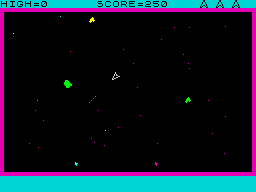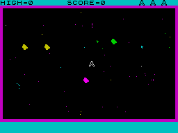 | Publisher: Genre: Author(s): Minimum Memory Required: Maximum Players: Joysticks: Language: Media Code: Media Type: Country of Release: Comments: | PSSShoot 'em Up A. Tobias 48K 1 - Eng N/A Audio cassette Europe (£4.95) Re-released by Kryptronic in UK | Sinclair ZX Spectrum |