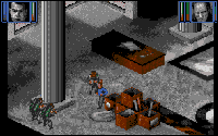 There are some nice digitised shots and speech between the levels and the rest of the game looks good and is well animated (especially the little people in the second section). Again the sound effects and title music are fine.