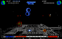 It soon becomes apparent that no penalty is incurred for letting the missiles past, other than a slight drop in the overall score. As long as the attacking spacecraft are destroyed, everything is hunky dory.
