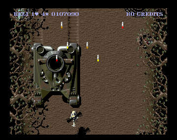 Shmups tend to be pretty. Swiv's graphics were passable back in 1991 and they are still acceptable by today's standards for retro games. Sound? Ergh. Firing off rounds of missiles or any of the other eight(?) weapons (plasma, flamethrower, the usual gear) sounds like... a platformer game... when the cliched hero jumps or hurts his head. It's totally off. Sure, it's a nitpick, but shmups need god-awesome sound, okay? BGM gets off on a better foot, but it still isn't as energetic as Swiv's contemporaries.