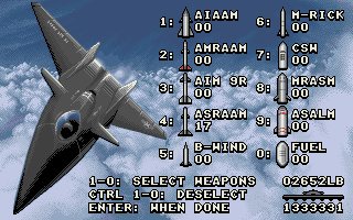 The in-flight game engine is very well made. In your fighter's cockpit you have lots of controls, from selecting weapons to activating/deactivating your ECM (Electronic Countermeasures). However, if you are hit, some controls will surely be damaged. This is shown by indicators in your cockpit. The differences between each weapon and the importance of the systems in your cockpit are listed in my documentation.