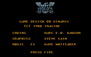 Publisher: Genre: Author(s): Musician(s): Minimum Memory Required: Maximum Players: Joysticks: Language: Media Code: Media Type: Country of Release: Comments: | ![]() Shoot em Up Dinamic Software, Marc Dawson, Steve Cain David Whittaker 512K 1 Yes Eng 3.5" floppy disk Worldwide | Click to choose platform: Amstrad CPC Atari ST Sinclair ZX Spectrum Commodore Amiga Commodore 64 |