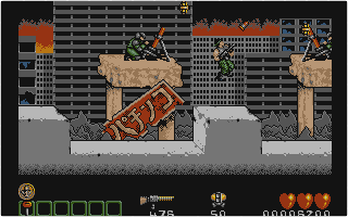 Another clicheè of this kind of games is the end - of - level boss; no self respecting shoot 'em up comes without a few really tough enemies, usually strange, very big or riding some sort of tank; once again, Midnight Resistance is no exception. You' ll have to fight big tanks, burning men sliding up and down a pole, big green things spitting fire bullets, and so on... but then again, it' s OK if you like this sort of things, ain' t it ?