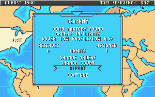The strategy game requires the player to deploy up to five agents to different nations with one of two objectives; infiltrate or organize a local resistance. The former allows the player to discover critical items to complete the game. The latter allows the player to delay the invasion of the USA.
