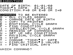 No reviews have been submitted for the Sinclair ZX81 version of Biorhythms. Why not be the first?