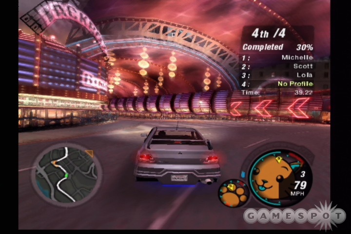 The entire presentation of Need for Speed Underground 2 seems confused. On one hand, we see advertisements for dozens of companies and a safety message on the importance of seat belts, yet we hear street talk in a night racing environment. It almost tries to become Burnout with the Nitrous, for which no one could belittle. However, once the racing is found and the confusing menus have been navigated, there is some great arcade-style racing to be found. Though the AI may be unbalanced, the tracks are well designed with tricky turns and shortcuts, an endangered species in many recent racers. The deep customization also adds a lot of replay value to the game. Though Burnout 3: Takedown is an all-around better game, GameCube holders dying for a racing experience would be foolish to skip over Need for Speed Underground 2.