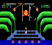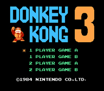 Donkey Kong 3 was originally a 1980's arcade games much like the other Donkey Kong games. It was later on ported to the NES, and GBA later on. You can now find this 1980's arcade treasure on the Wii Shop. The original game was released on the NES in 1986, and the emulated version on the Wii was released July 14, 2008 in North America and in Europe January 9th, 2009. The Donkey Kong series before this were known for dodging objects while platforming forward until you move onto the next level. This Donkey Kong took a different turn and turned itself into a "fixed shooter."