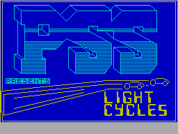 | There are no cheats on file for this title. | Note the difference in game title between the box/cassette and the loading screen. Light Cycle on the printed media, but "Light Cycles" on the loading screen. This was quite common with early home computer games. |