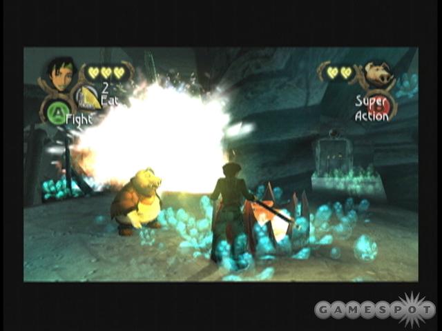 Jade's adventure requires her to travel all across the world (and maybe even out of it?) to accomplish her various missions. In battle, she will usually have a partner--either Pey'j or Double H. Not only do these two men ease the battles Jade must fight, they also are at times required for some of the puzzles she must solve. In battle, though, there are several simple maneuvers. She can attack, dodge, use items, command her sidekick, and perform an area-attack. While it may not sound like much, that's usually not the case. You will love figuring out each enemy's battle tactics and forming a plan of your own on the spot to counter them (and there are a lot of different enemies). If anything disappoints me, it's that all you do to attack is press the A button. While there are many ways she uses that pole (no phallic implications behind that phrase!), they are simply initiated depending on which way you press the control stick. Nevertheless, there are a ton of different moves she uses depending on which ways you do hold the stick, and it all flows together very nicely. As a whole, there is a little improvement to be made, but overall battling is great fun.