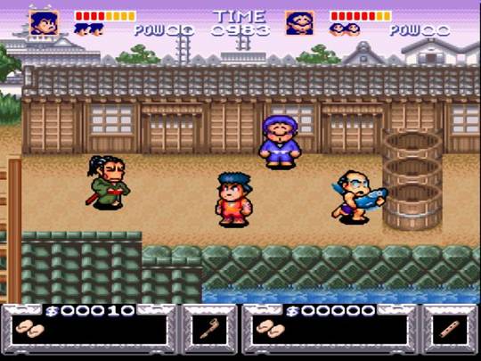 The game stars a pair of “ninja” named Kid Ying and Dr. Yang (Goemon and Ebisumaru for the traditionalists out there) who are about as far removed from your standard definition of the word “ninja” as you can get. But let's not get hung up on details, shall we? You start the game in peaceful Edo village and are tasked with tracking down the local ghost woman and teaching her some manners. The story spirals on from here and is actually pretty good for a beat-em-up, but I won't go into too much detail on that to avoid spoiling the game for you. Suffice to say, this seemingly simple task starts you on a quest that takes you all over medieval Japan.
