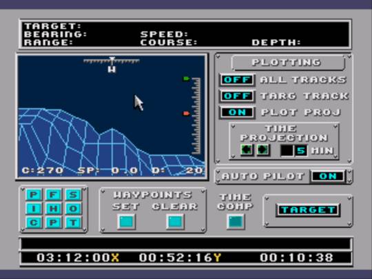 Gameplay: Most of the game all you do is point and click on the things you want to do. At the beginning of the game, you start on on the bridge and you choose where to go, though you have to go to the comm. room first to recieve your mission orders. You can use the sonar to detect enemy subs and torpedoes that may be approaching. You get some nice weaponry to use against the enemy also. Some of the things that will help you in your mission are the ability to raise and lower the periscope and antenna. However, if you do those things too much, the enemy will spot you and the mission will be a failure.