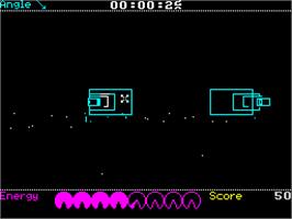 There are two playing techniques. Various squares on the planet map contain baddies in profusion, and those are static defences which fire missiles at you - depicted as a series of expanding squares or pieces of fractured light. Yes I know, it sounds confusing, but so is the game.
