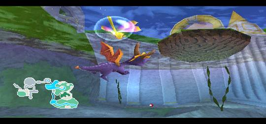 Seeing as I said that the low point of the game was the camera, you must think, well, the game itself must be better, right? Well…you’re right, it is! It also happens to be better than a certain bandicoot’s games. To start off, well, you’re Spyro, and you got a big job ahead of you. In order to save Elena’s world from the evil clutches of Ripto, you must go through 3 different homeworlds, each with it’s own set of lands. In these lands, you must simply make it through to the end of the levels to get a talisman, which will be recorded into your guidebook.
