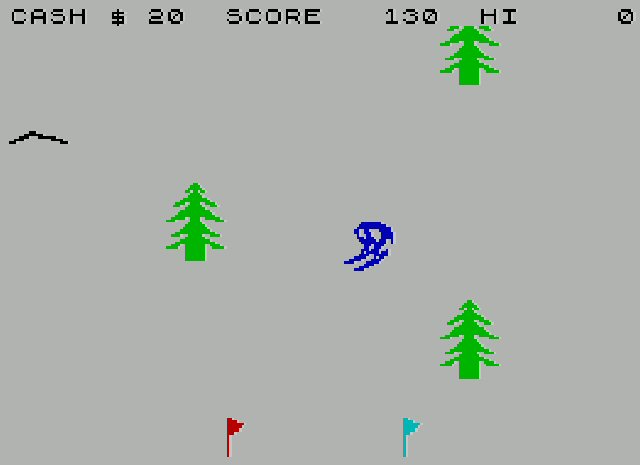 Points were scored for travelling between the flags - and as before $10 was awarded for every 1000 points gained. Hitting trees caused Horace to fall over - but if his ski's were undamaged then you could carry on down the slope. If they were broken then it was back to the busy highway to purchase them again...