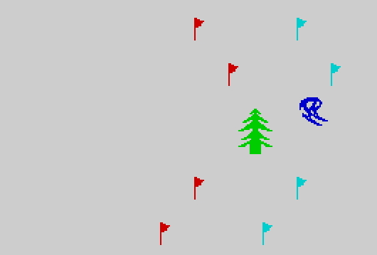 Now the game switched to the actual ski-ing, the second part of the game. You had to slalom down the ski-slope (the Hannekon run), avoiding any trees and going between the flags.