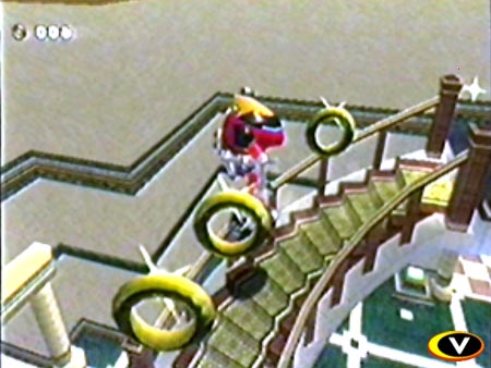 Every single thing of this game are totally detailed, making a truly perfect 3D graphics environment with everything rendered greatly, not a thing is to be missed out. The characters themselves are very cute to look at, especially Tails and Amy. The characters models are in 3D so it’s really an amazing awe from me as I’m not expecting a truly realistic character models of those 2D memories brought back from the various Sonic games in the good ‘ol Genesis. The game also moves very fast and fluent but without a single slow-down or noticeable flaw in the frame-rates. But unfortunately, there are also several minor problems, like if you went to fast and ram into a side of a wall and other simple and miscellaneous problems.