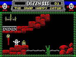 There are two ways of completing the game, as in Treasure Island Dizzy. First of all you can collect all the gold coins littered around or you can use objects in the correct places and risk your lives jumping alligator’s noses (!) to rescue Daisy from the castle. All the cute sprites, colourful scenery and excellent sound add to the cartoon atmosphere and are totally addictive. There’s even digitised speech to greet you when you’ve loaded the game up, and all the usual excellent Code Masters spit and polish.