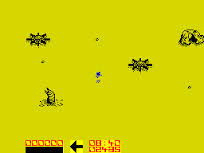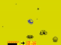 You hover above the barren surface of the asteroid in your land skimmer - a tricky task on its own as it's a ground effect vehicle and so extremely hard to manoeuvre. Plus, you must also defend yourself against marauding alien ships, look out for rocks and watch out that you don't run over the land mines. If your ship is hit, it'll eject you just before it's blown to smithereens, so you've a chance to reach a replacement pod. But keep a sharp eye out for the Dune-style worm creatures that come wrigglin' and writhin' out of the sand on the trail of breakfast.