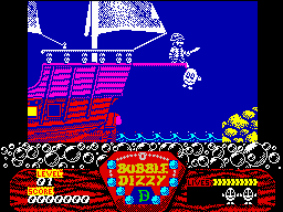 I've got a query about this. If the bubbles Dizzy's riding on are underwater, how can they burst? Where does the air go? Up his bum? The simple truth is that bubbles can't burst underwater. I checked in the YS Book Of All World Knowledge and it confirmed that the Codies are talking crap.