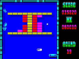 Yes, I know we've said it before, but it really is that good. Each screen has a different pattern of bricks to knock off, and they're all extremely tricky - at least I think so, since I haven't got beyond level 9 yet. Most bricks need just a single hit, but silver ones must be pinged twice (and on later screens, anything up to five times) and gold ones are indestructible.