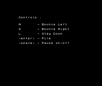 Control keys: A/S left/right, L to stay down, ENTER to fire