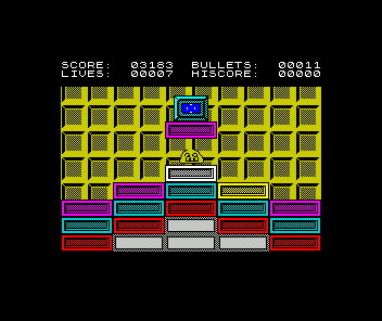 Bonus objects keep falling on his head: a cylindrical satellite (nicknamed Ring On A Thing) gives temporary protection against chasers, an air cylinder gives an extra life, a 'tick' corrects the colour of the present level blocks, and a five-pound note increases points.