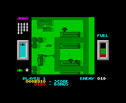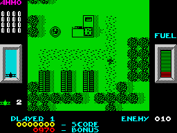 Viewed from overhead, your plane takes to the air shooting down all enemy planes in the vicinity. Once the air is clear you hurtle off towards an enemy base and bomb it. Having achieved that objective you go onto to do the same in wars II and III - though each level has more enemy planes and more bases to bomb.
