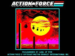 The game uses the characters from the toy soldier sets that go under the same general title. Like everything else, Action Force is also a comic, a TV series and a set of monogrammed bath mats, but the toys started it all off. So as Snake Eyes, equipped with a helipack and rapid fire rifle, you must fly across Botsneda, avoiding ground-to-air missiles and shooting out electrical generators and barricades. This isn''t just to satisfy your own blood lust and whip up a huge points total, you''re also clearing a path for the AWE Striker, with its crew of Flint, Lady Jaye and Quick Kick who must recover a hard disk of top secret info before it falls into enemy hands. Well, that''s the excuse, anyway.