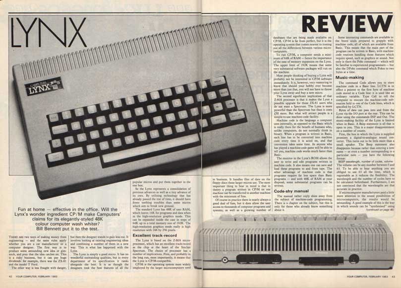 Lynx Review (Page 1 and 2 of 3) - Your Computer, February 1983