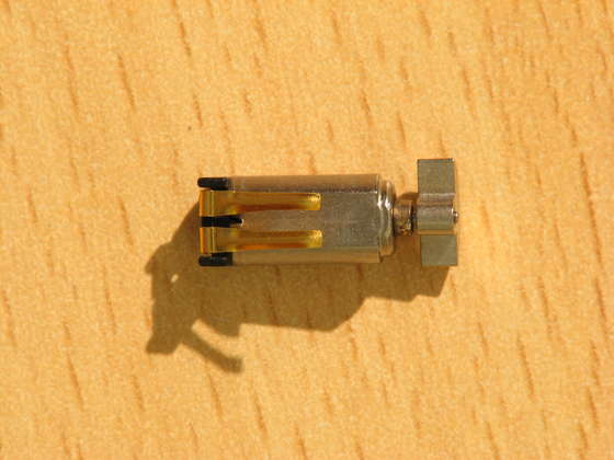 The motor I used is tiny and was salvaged from an old Nokia 5100 phone. The offset weight had to be trimmed down because it was too big.