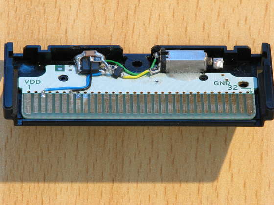 PCB that is contained within the blanking plate, but didn't want to ruin it in case I had to send it back. I opted to dismantle an old Pokemon Pinball GBA cartridge and use the edge connector.