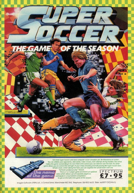 ![]() | Super Soccer Publisher: Imagine Software Ltd Released: 1986 Platform: Sinclair ZX Spectrum |