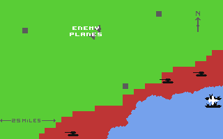Ace does have a few irritations. First, your plane isn't as responsive as you'd like it to be, which is especially critical when it's landing time. Every landing needs to be perfect, and that's hard to pull off if the craft does not always respond to a light tap of the joystick. All in all, landings are needlessly hard and you need to pull them off time after time to finish just one game session - think at least five sorties to eliminate all enemy ground forces (on the lowest level, otherwise it's more) and five more to sink the invasion fleet after that, and you need to land no less than ten times. One little mistake, and it's game over. It may be realistic, but in gameplay terms it's a bit frustrating that 90% of the game's challenge is in putting your plane down on the runway without crashing. Makes the combat scenes a little stale in comparison. Another problem with Ace is the length of a game session: count on 2 hours to finish the game on the lowest difficulty setting, and as many as 5-6 for the highest. In a game where you can't save your progress in any way (would have been great if you could do that on the runway!), that's too long for comfort. It's not a technical issue either as the game *does* have the option to save your high scores to tape. They could have implemented an in-game save feature as well and it would have been a good decision.