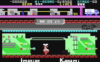 | Publisher: Genre: Author(s): Musician(s): Minimum Memory Required: Maximum Players: Joysticks: Language: Media Code: Media Type: Country of Release: Other Files: Comments: | Imagine Software LtdArcade (General) Colin Gresty, Stephen Wahid, Gary Biasillo Jonathan Dunn 64K 1 Yes, required Eng N/A Audio cassette UK (£8.95) Advertisement This title also appeared on the compilation 'Konami Arcade Collection'. | Commodore 64 MSX |