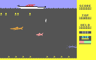 ZXGoldenYears.net (Unknown) 7th Mar 2011 10:19Glug glug...no hang on that's a different game. This aquatic number puts you in a wetsuit and drops you to the bottom of the ocean to collect pearls from oysters. Before their precious bounty can be pocketed though, you need to wait for them to open. This can be a nervy business though as the seas are patrolled by a variety of deadly fishies. If your air begins to run low, you need to return to your boat. As you venture into deeper caves, there is greater treasure to be found, but also more deadly creatures.