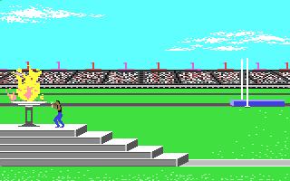 This game is best played with friends to compete against. But, the world records that are saved between gaming sessions are good for using as a goal if you can't find any friends willing to play this old game. Don't expect the computer to provide an AI player any more than it absolutely has to. If you are the only human player, you will always win the gold...no matter how badly you did. The odd controls that some of the games use really bring down the overall score and fun factor, especially when it seems like the controls don't even respond at times. Visually, the game is top notch. And, this is a great first effort for the series of Olympic themed games that EPYX produced for the Commodore 64.