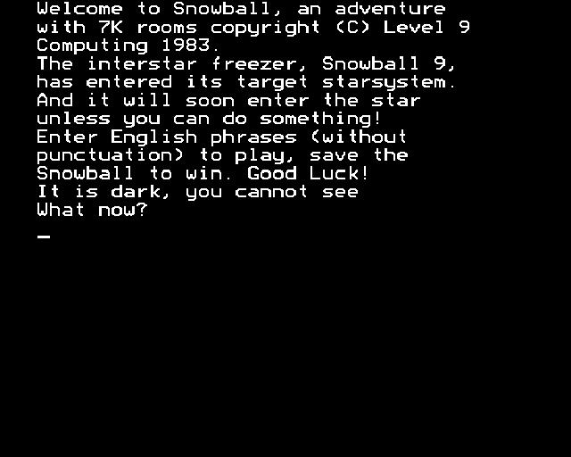 ZXGoldenYears.net (Unknown) 7th Mar 2011 10:14Part one of the Silicon Dreams trilogy. This game boasts over 7,000 locations, but in truth there are only around 200 original locations with the rest made up of similar-looking locations in different 'passenger discs' that are identified by colour-coding. You awake aboard the starship Snowball and something is badly amiss. You must reach the control room and deactivate the engines, avoiding the lethal hazards littered along the way. There's so much more to this game though; so many complexities and intricacies that I can't hope to do justice to here. It's never a case of just encountering a problem, having the right item and hey presto, it's on to the next one. The key objects are always gathered following a series of sub-plots that in turn started as problems of their own. You get the picture. Outstanding.