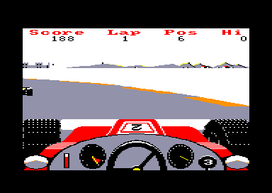 Unlike some other race games, this one does not kill you off when you crash. You simply come to a very sudden halt and several other cars overtake you before you get back on the circuit again. Other features of the game include a scrolling back-drop, warning signs and a plethora of sound effects.