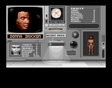 After the introduction, a selection screen lets you choose your agent from four human and two android agents. Each agent has a unique set of skills and abilities and these effect how the game will be played. It is possible to compensate for weaknesses by buying in skills and purchasing specific weapons and sci-fi gadgetry to make life easier. There is a vast array of equipment on offer such as a back pack computer (with in-built factory map), bombs, compass, electronics kit, gas mask, grenades, five guns, jet pack, lock pick, med kit, psi-enhancing drugs and infra-red goggles amongst others. Phew!
